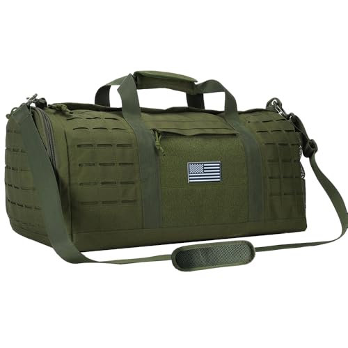 SEYATULLH 35L Military Tactical Duffle Bag for Men with Shoe Compartment Molle Gym Bag Football Training Bag Travel Rucksack(Army Green)