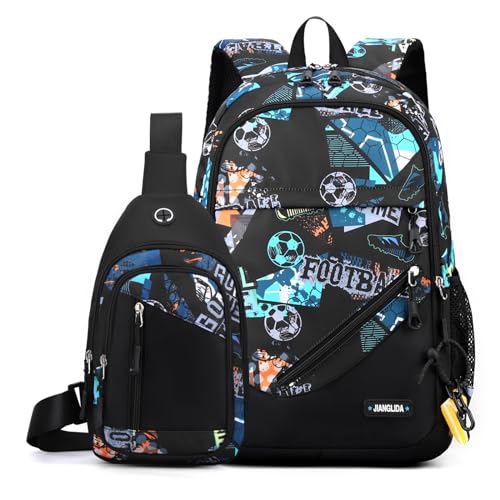 Amythe Boys School Backpack Set with Sling bag, Back to School Bag for Primary Secondary School, Stylish Casual Backpacks for Kids Teenagers, 30 Liters Nylon Travel Rucksack -Green