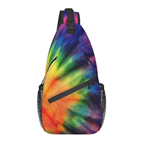 Sling Chest Crossbody Bag Anti-Theft Waterproof Shoulder Backpack Casual Rucksack for Sports Gym Yoga, for Colorful Bright Rainbow Tie Dye Spiral Swirl