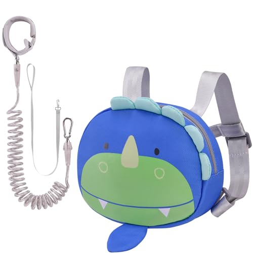 Bebamour Animal Toddler Backpack with Reins Mini Bag with Safety Leash for Children Portable Backpack Rucksack with Safety Harness for Boys and Girls, Blue Dino