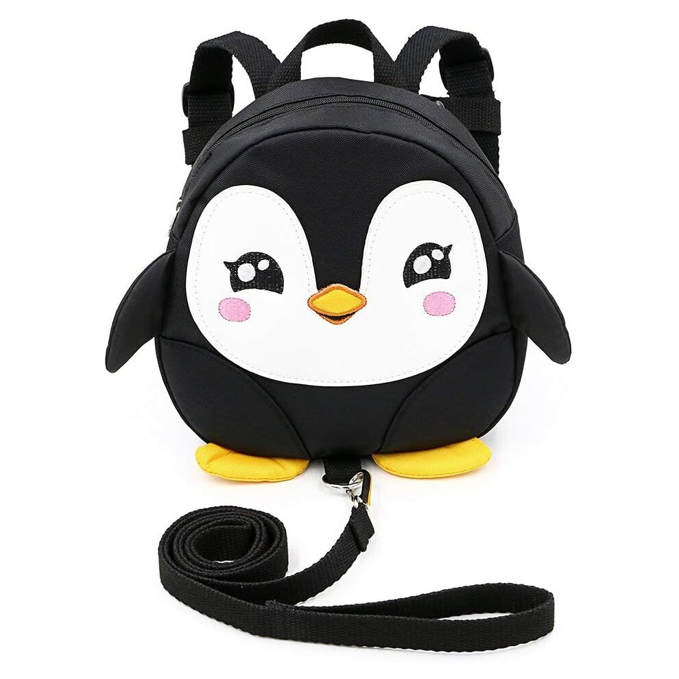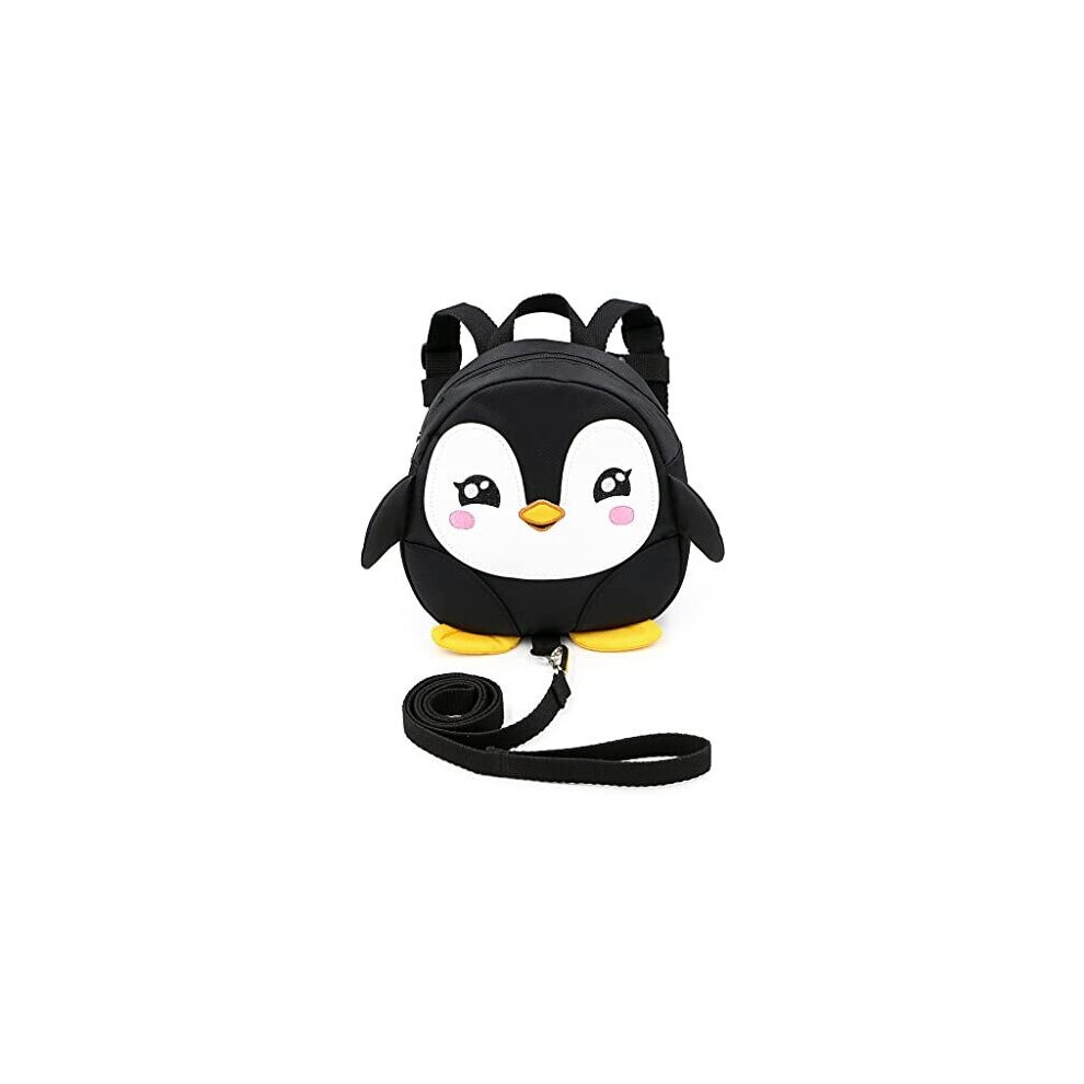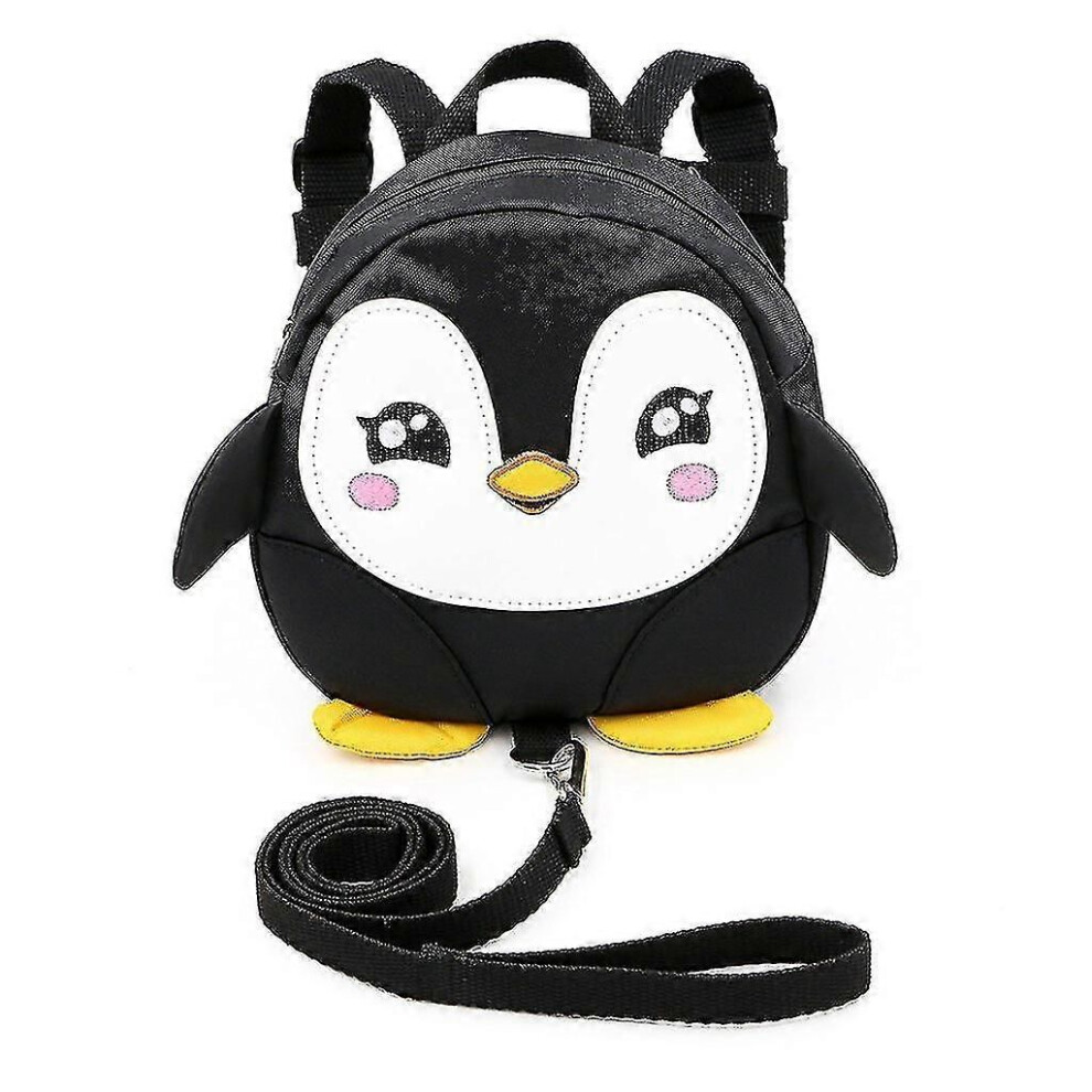(As show, One size) Toddle Children Backpack With Reins Rucksack Harness Walkers Tether Belt Penguin (1pcs Black)