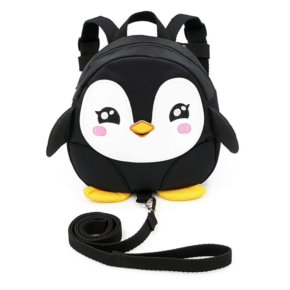 Toddle Children Backpack With Reins Rucksack Harness Walkers Tether Belt Penguin (black)-MXBC