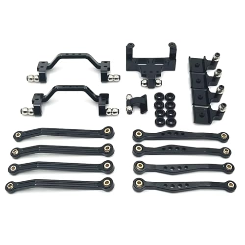 RC Car Accessories Compatible With WPL C64 1/16 RC Car Parts Metal Upgraded Pedal, Pull Rod, Suspension Frame, Rudder Base Set(Black)