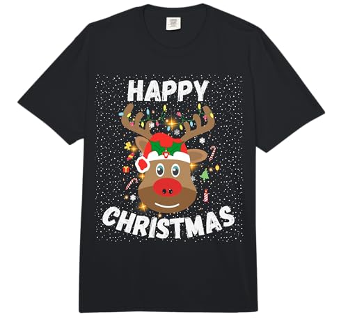 Happy Christmas Rudolph The Red Nosed Reindeer Cute Xmas Comfort Colors Adult Heavyweight T-Shirt