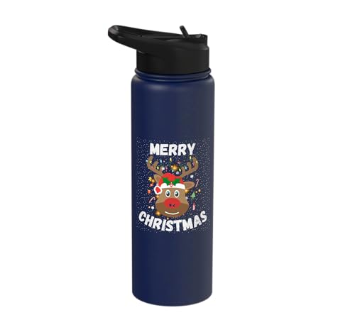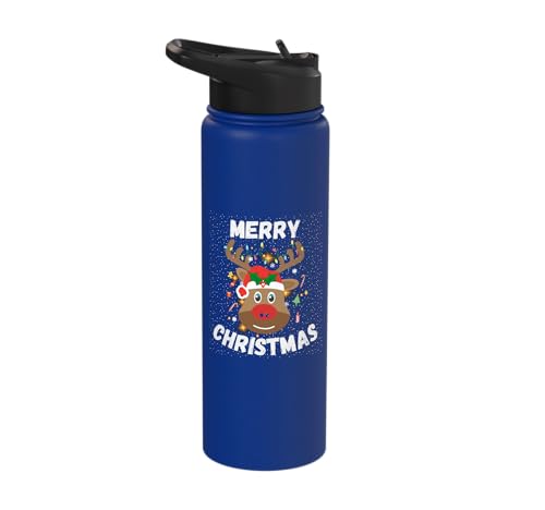 Merry Christmas Rudolph The Red Nosed Reindeer Cute Xmas Stainless Steel Insulated Water Bottle