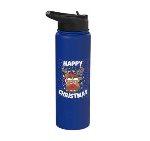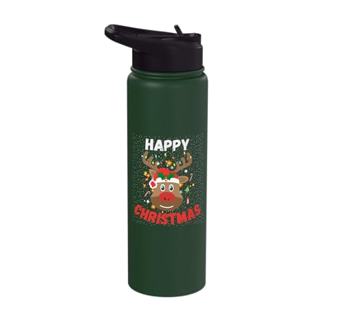 Happy Christmas Rudolph The Red Nosed Reindeer Cute Xmas Stainless Steel Insulated Water Bottle