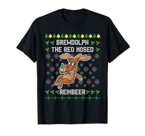 BCC Santa's Christmas Shirts & Jolly Gifts Brewdolph The Red Nose Reinbeer Rudolph Beer Reindeer X-Mas Unisex Holiday T-Shirt - Black, Short Sleeve, Classic Fit, Small