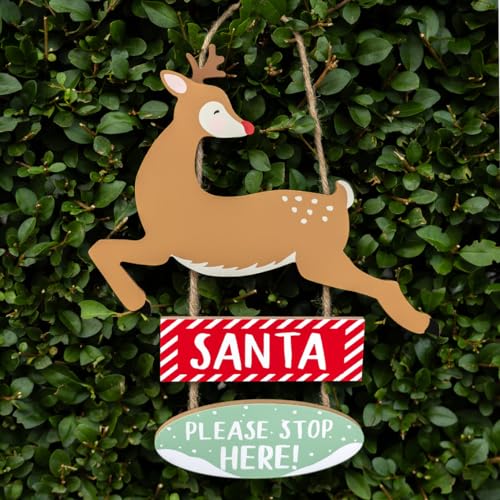 Talking Tables Santa Stop Here Hanging Wooden Sign Featuring Rudolph The Reindeer | Reusable Christmas Decorations for Kids | Made Add Some Xmas Cheer to Your Home |30cm Tall