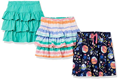 Amazon Essentials Girls' Knitted Ruffle Skort Skirts (Previously Spotted Zebra), Pack of 3, Navy Space/Turquoise Green/White Tie Dye, 6-7 Years