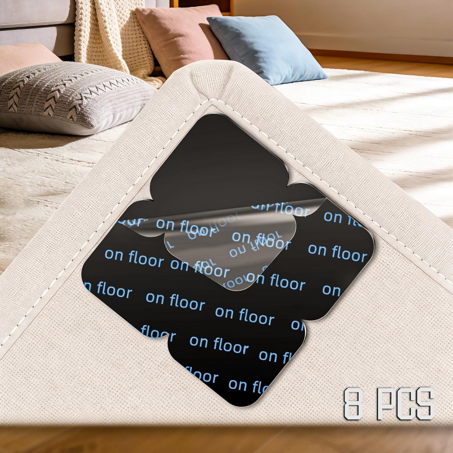 Rug Grippers - 8 PCS Anti Curl Corner Grippers for Laminate, Wooden, Tiled Floo