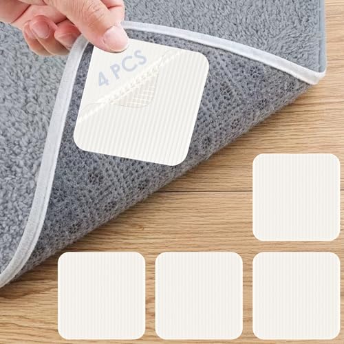 FuKuEn Rug Pads Grippers Anti Slip Rug Underlay Floor Mat Stickers Anti Slip Mat Grippers on Hard Floors Reusable Washable Grippers Pad 4 pieces