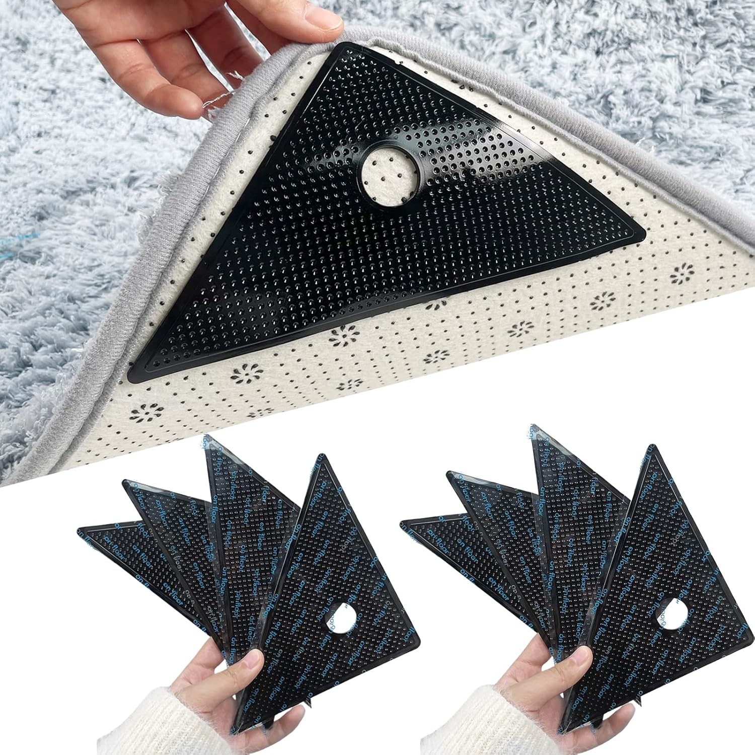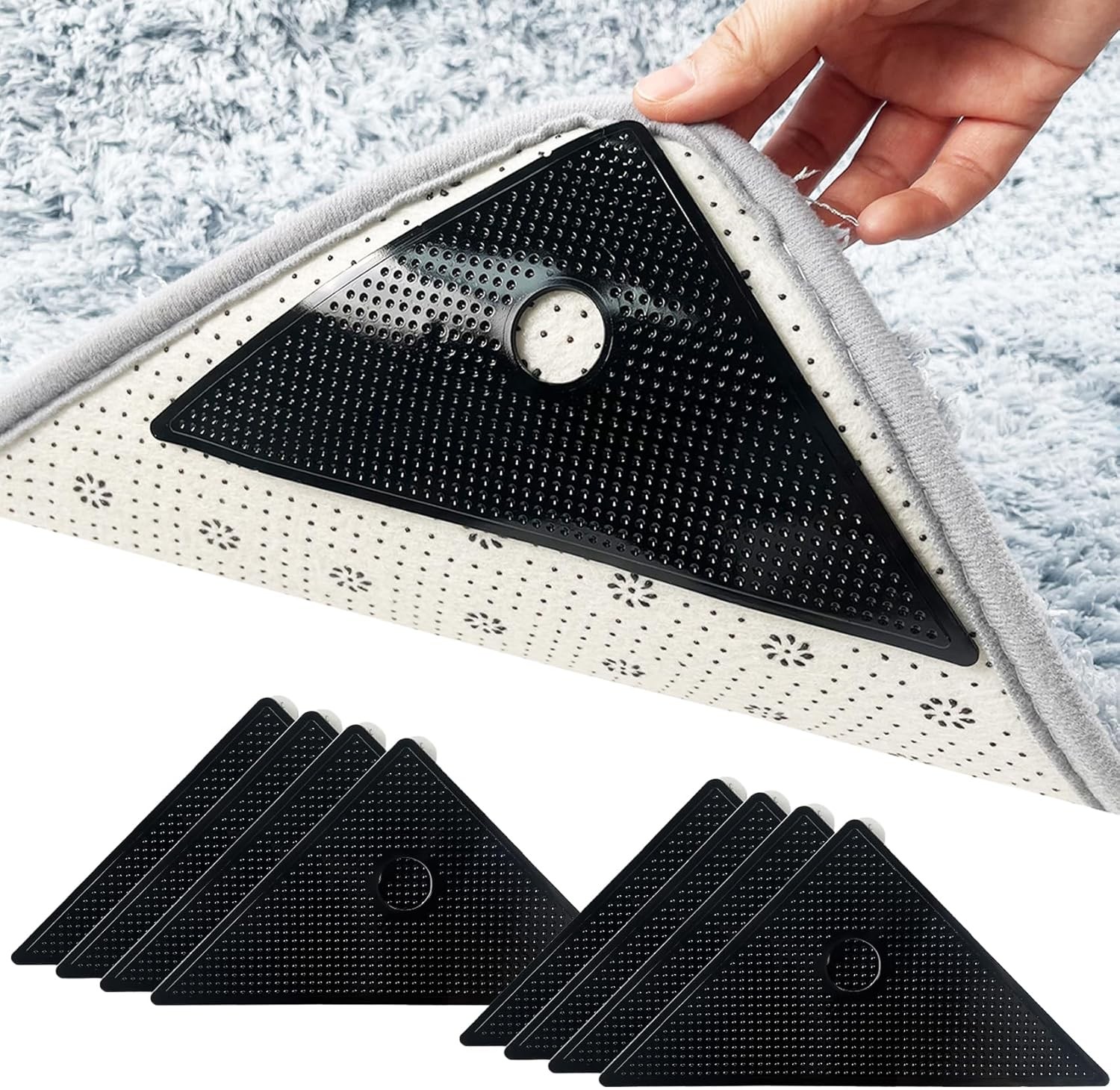 8 Pcs Triangle Rug Grippers, Reusable Carpet Tape & Washable Non-Slip Double-Si
