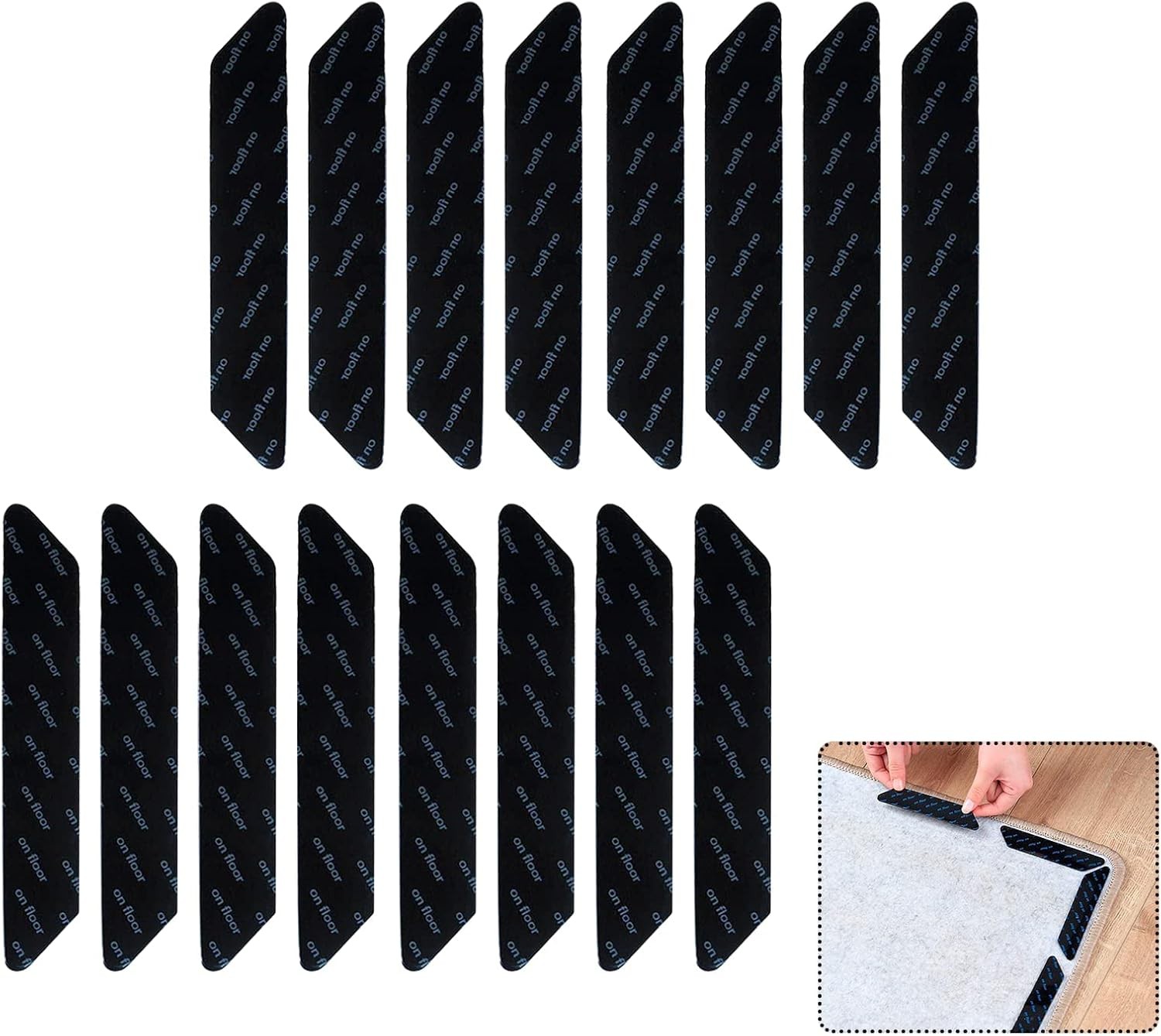 16Pcs Anti-Slip and Reusable Rug Grippers for Wooden and Hard Floors, Non Slip