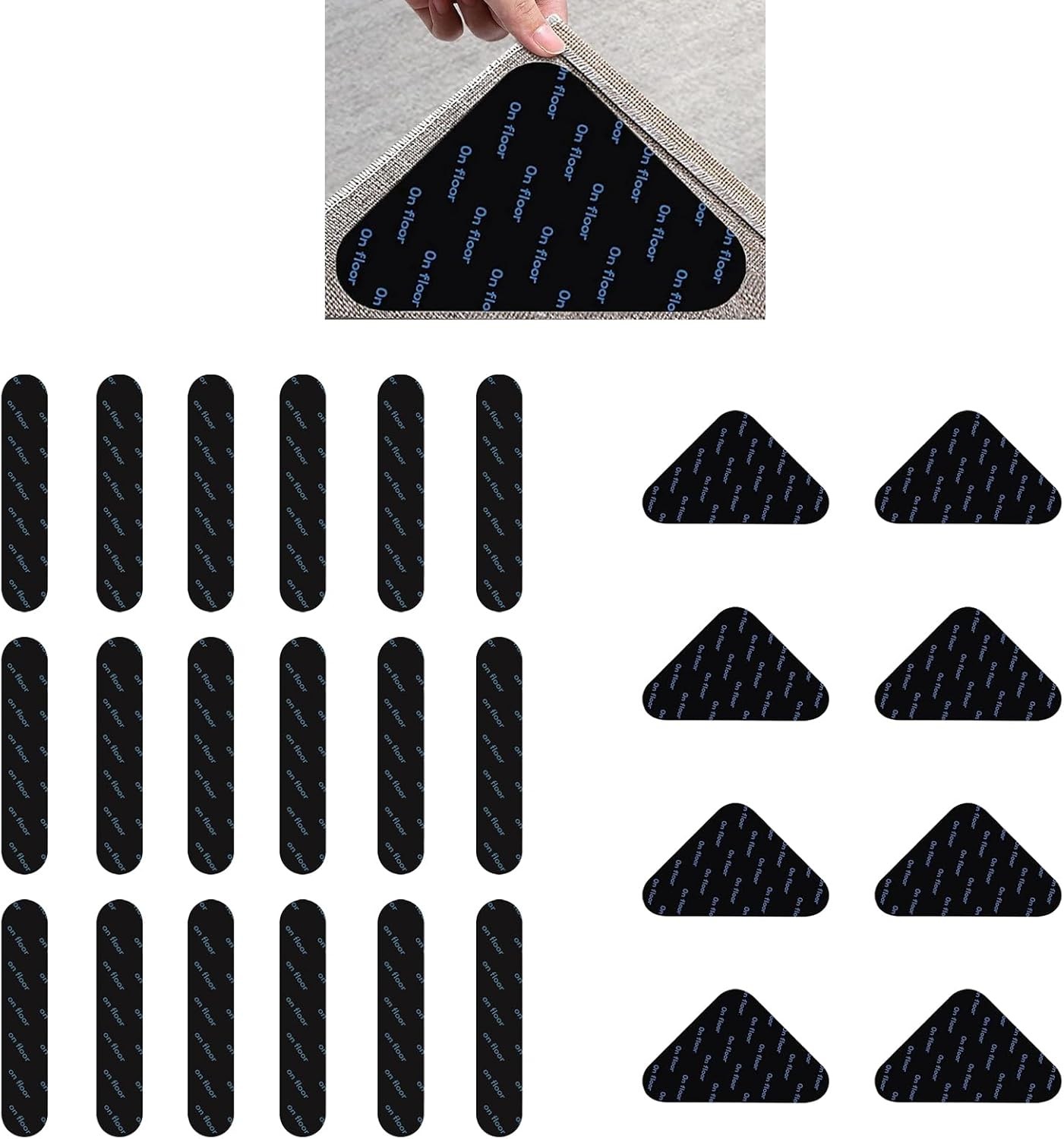 Rug Gripper Pack of 24, Rug Grippers for Laminated floor, Triangle Pads for Woo