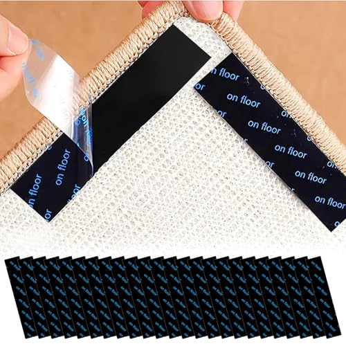Rug Carpet Non Slip Grippers 24PCS, Reusable Non-Slip Rug Pads,Double Sided Mat Corner Gripper Tape,Strong Adhesive Rug Stickers,Grippers for Area Carpet,No Damage Removable for Hardwood Floors
