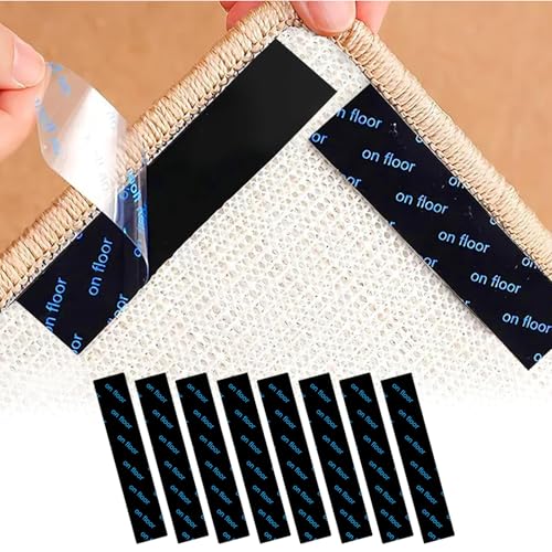 Ysnzaq 8 Pieces Rug Grippers, Reusable Carpet Tape Washable Anti-Slip Rugs Tape