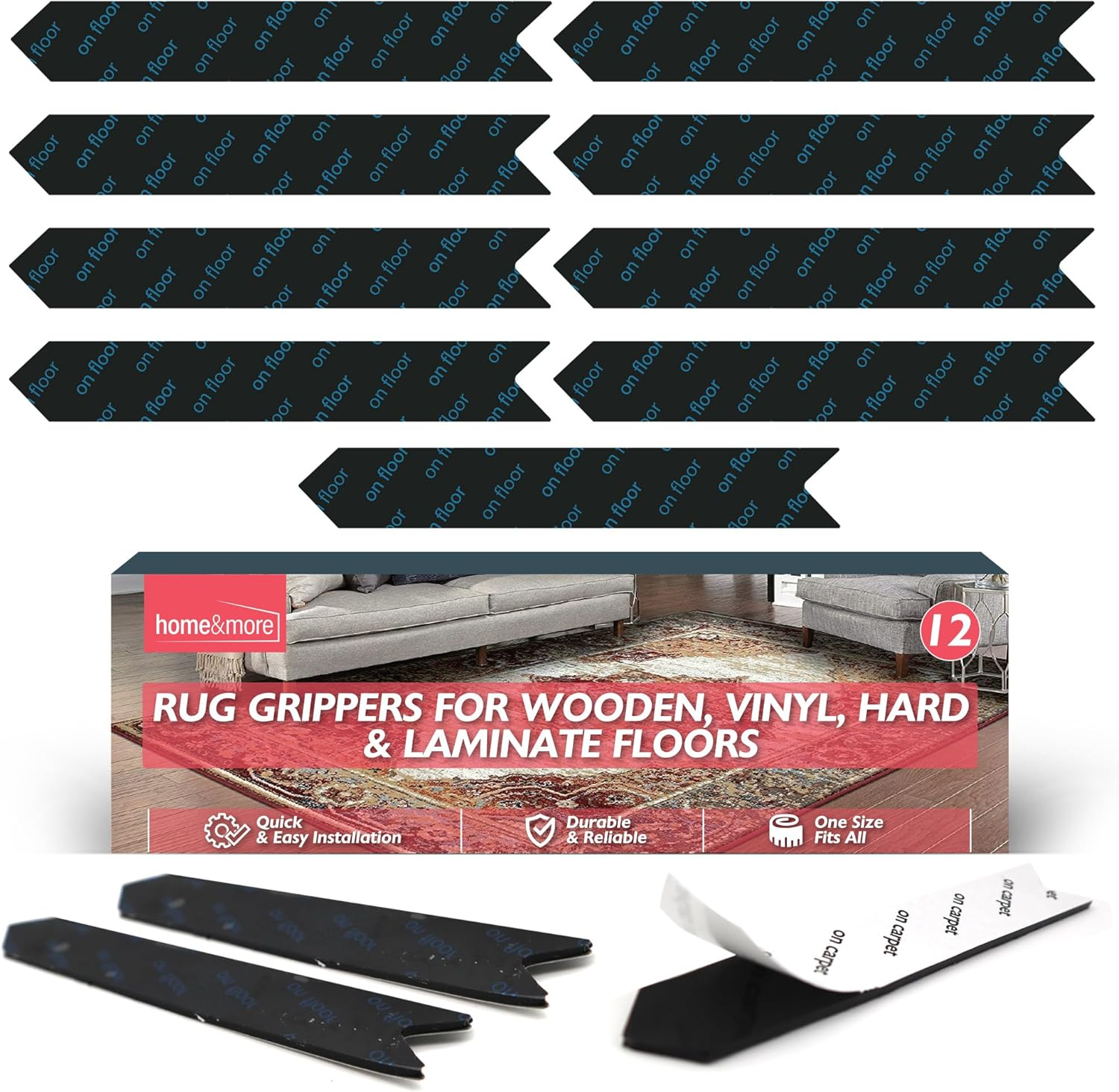 12Pk Rug Grippers for Wooden, Laminate, Vinyl & Hard Floors – anti Slip Underlay
