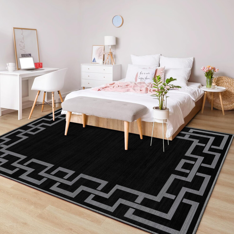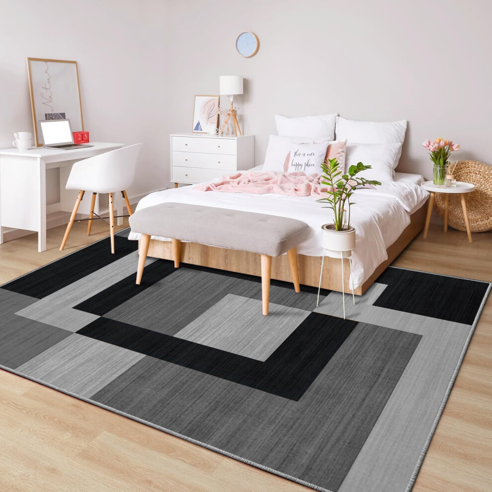 (120 x 170 cm (4 ft x 5 ft 8 in)â Small Area Rug for Living Room/Bedroom/Office, Black Grey) Printed Modern Grey Rugs Area Carpet Runner Mat