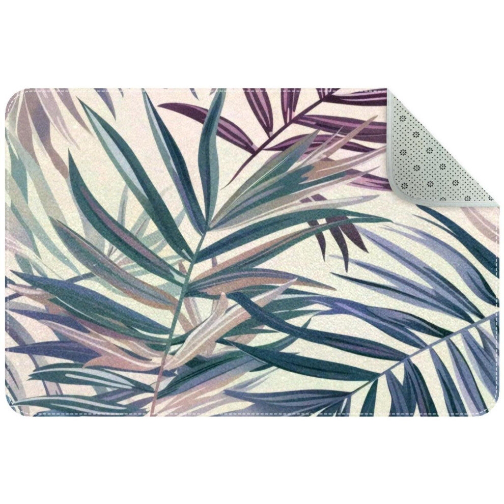 Tropical Leaves in Pastel Colors Small Area Rug, Non-Slip Door Mat Indoor Floor Mat, Washable Kitchen Rug Entrance DMat for Bedroom Living Room