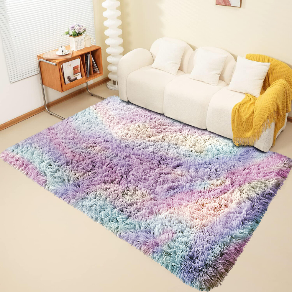 (120cm x 170cm (4ft x 5ft 8in)- Small Area Rug For Living Room Bedroom/Indoor Outdoor Rug) Fluffy Shaggy Rainbow Rug Anti Slip Soft Carpet UK