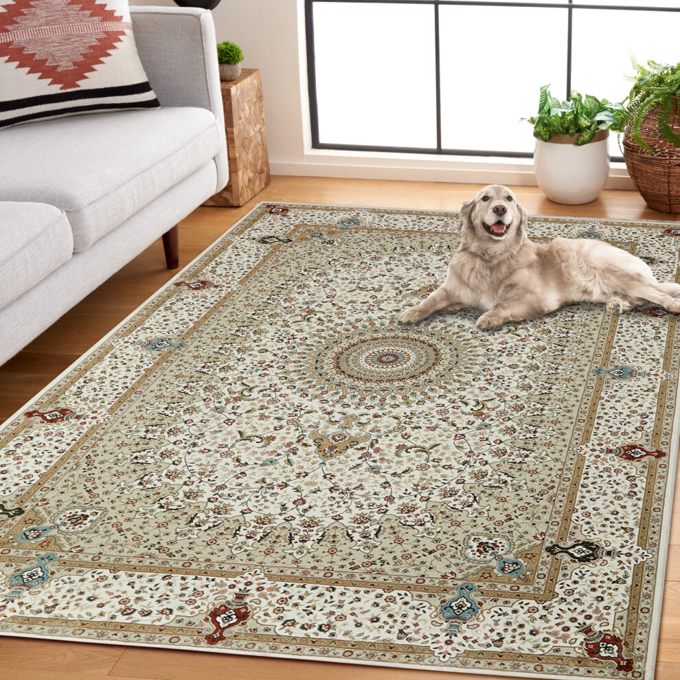(120 x 170 cm (4 ft x 4 ft 9 in)- Small Area Rug For Bedroom Living Room, Willow Beige) Area Rugs Living Room Traditional Rug Soft Carpet