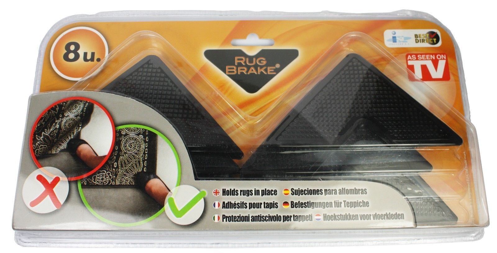 Rug Brake - 8 Adhesive Corners to Stop Rugs Moving on Hard Floors