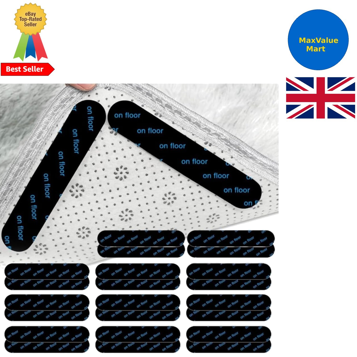 20 Pairs Rug Gripper Carpet Grippers for Rugs on Top of Carpet Hook and Loop UK