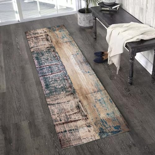 Jinnrug Runner Rug for Hallway, Brown Blue Easy To Clean Non-slip Corridor Kitchen Runner Carpet, Narrow Hall Playroom Balcony Entryway 80X200CM Doormat(70×250cm/2.3ft×8.2ft)