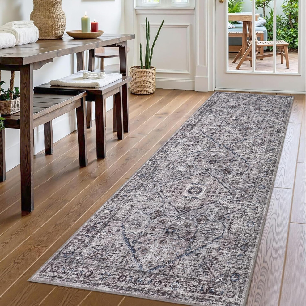 Runner Rug 2x6 Soft Vintage Washable Rug Runners Hallways Non-Slip Runner Low Pile Boho Farmhouse Carpet Runners Laundry Grey