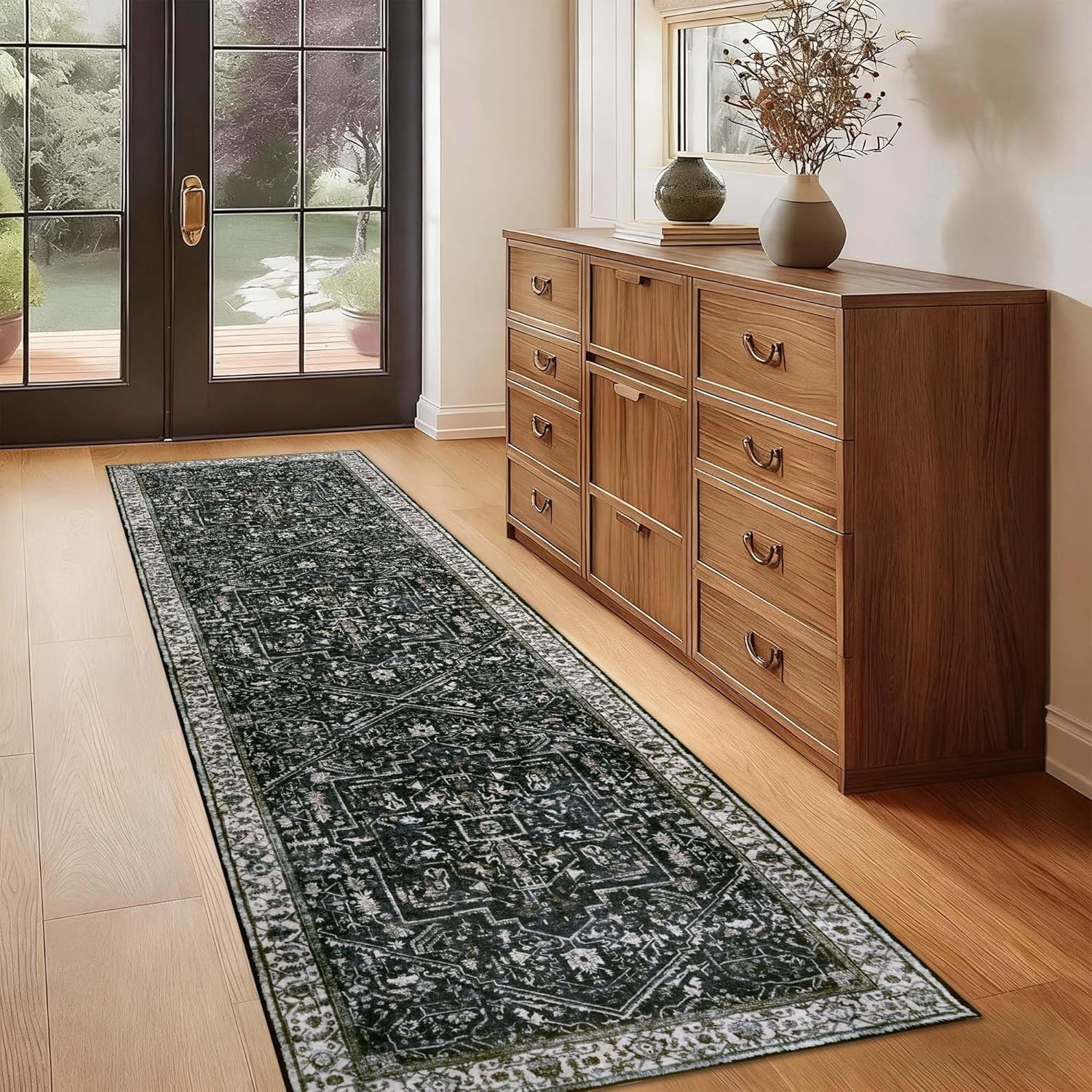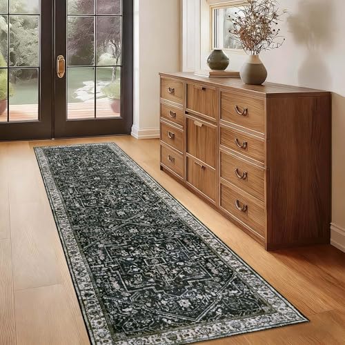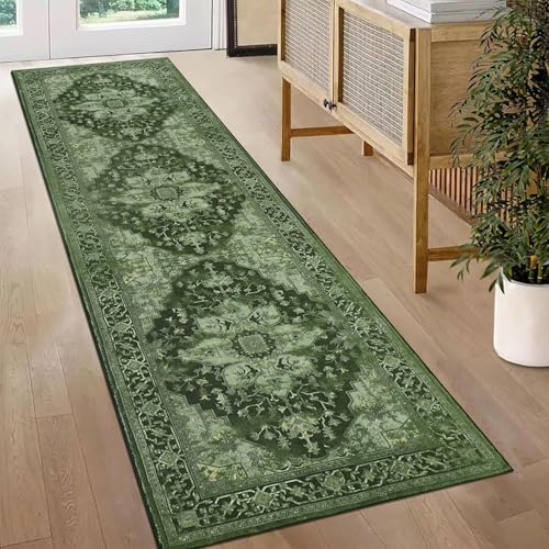 Homcomodar Distressed Carpet Runner for Hallways Non Slip Washable Runner Rug for Kitchen Vintage Hallway Runners Non Shedding Floor Carpet Runner for Bedroom Laundry Besides(Green,65x240cm)