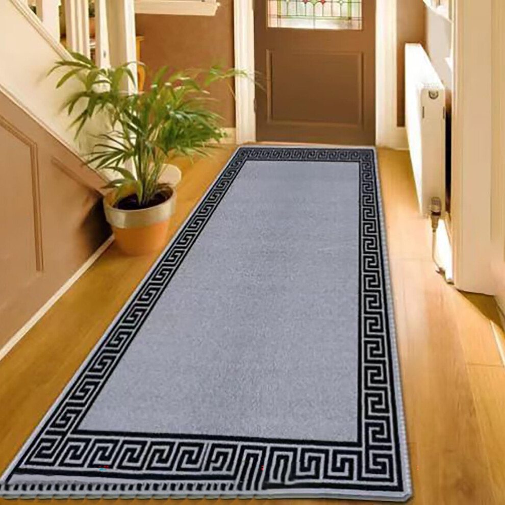 PHP Carpet Runners for Hallways Non-Slip Long & Wide Heavy-Duty Plain Super Absorbent Area Rugs, Stair Carpet and Kitchen Anti-slip Floor Mats - Greeky Rug (Silver & Black, 80 x 300 cm - Long Runner)