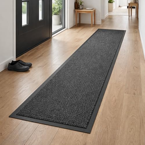 GULLAMBO Carpet Runners for Hallways Non Slip – Rubber Backed Dirt Trapper Hall Runner Rug | Heavy Duty Water Absorbent Low Pile Kitchen Runner Mat | Anti-Slip Indoor Corridor Rug – Anthracite