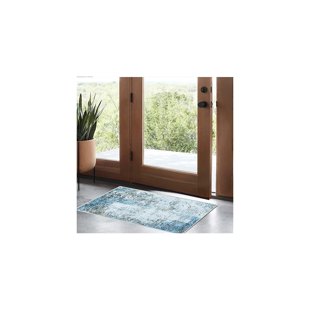 Washable Entryway Rug 3x5 | Non Slip Rug Runners for Hallways, Entryways, Kitchens, Bathrooms, Bedrooms | Ultra-Soft Flannel Carpet Kitchen Rug with R