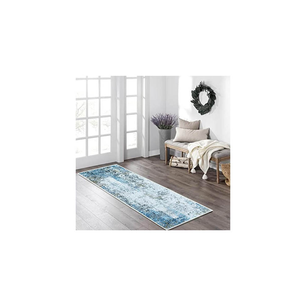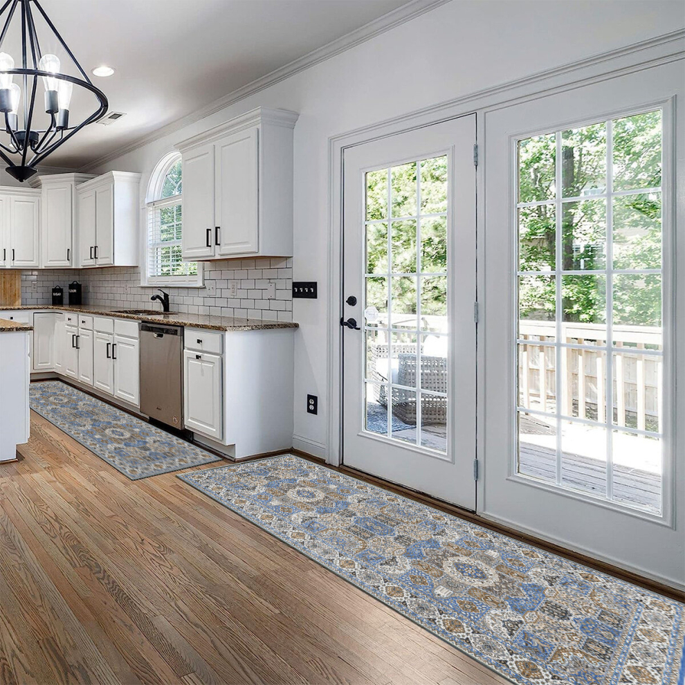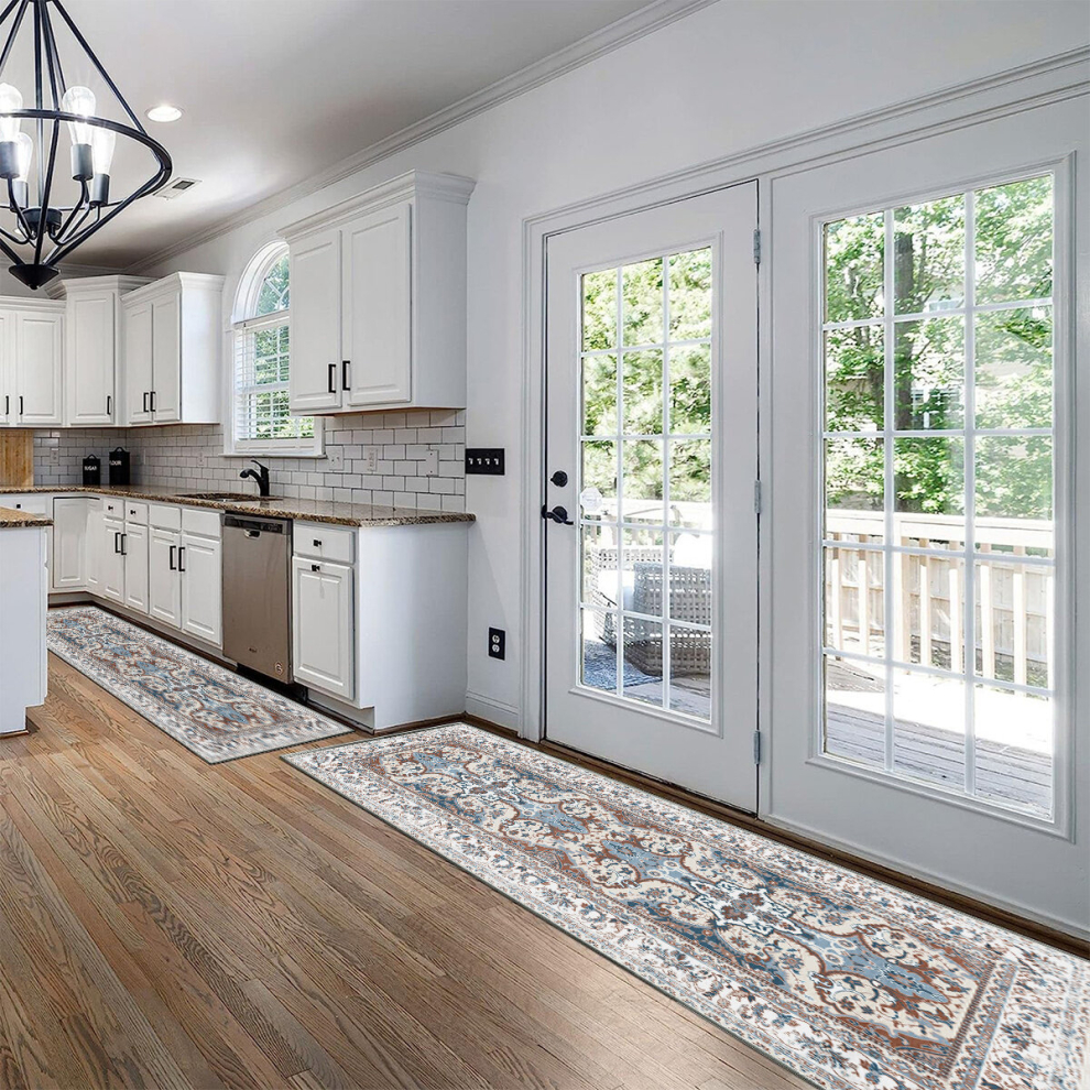 Hallway Runner Rug Non-Slip Carpet Runner for Hallways Kitchen Living Room No Shedding Washable Lightweight Long Runners Rug (Cream/Blue, 60 x 120 cm)