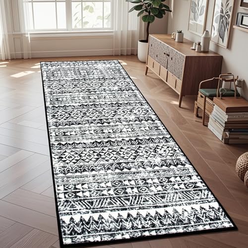 Tapis Design Rug Runners for Hallways, Hall Runners Non Slip Washable, Black Runner Rugs for Hallway Entryway Laundry Room, 65 x 180 cm