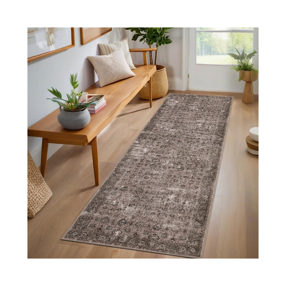 2x6 Runner Rug Soft Vintage Washable Rug Runners Hallways Non-Slip Runner Low Pile Boho Farmhouse Carpet Runners Laundry Taupe