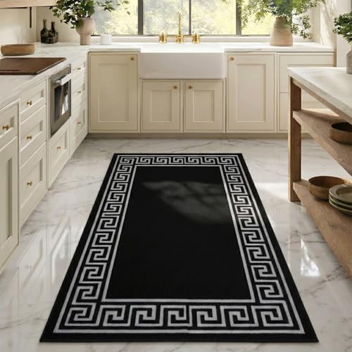 PHP Carpet Runners for Hallways Non-Slip Long & Wide Heavy-Duty Plain Super Absorbent Area Rugs, Stair Carpet and Kitchen Anti-slip Floor Mats - Greeky Rug (Black & Grey, 66 x 220 cm - XL Runner)