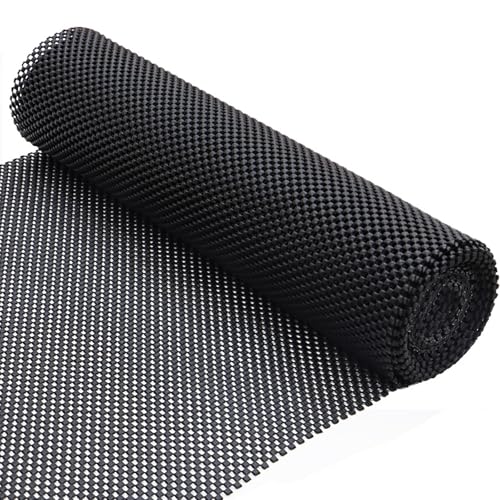 ASelected Multipurpose Non-Slip Mat 50 X 500Cm Grid Pattern Anti-Slip PVC Rug Gripper Non-Adhesive Shelf Drawer Liner Waterproof Matting for Bathroom Kitchen Home Office Cars Black