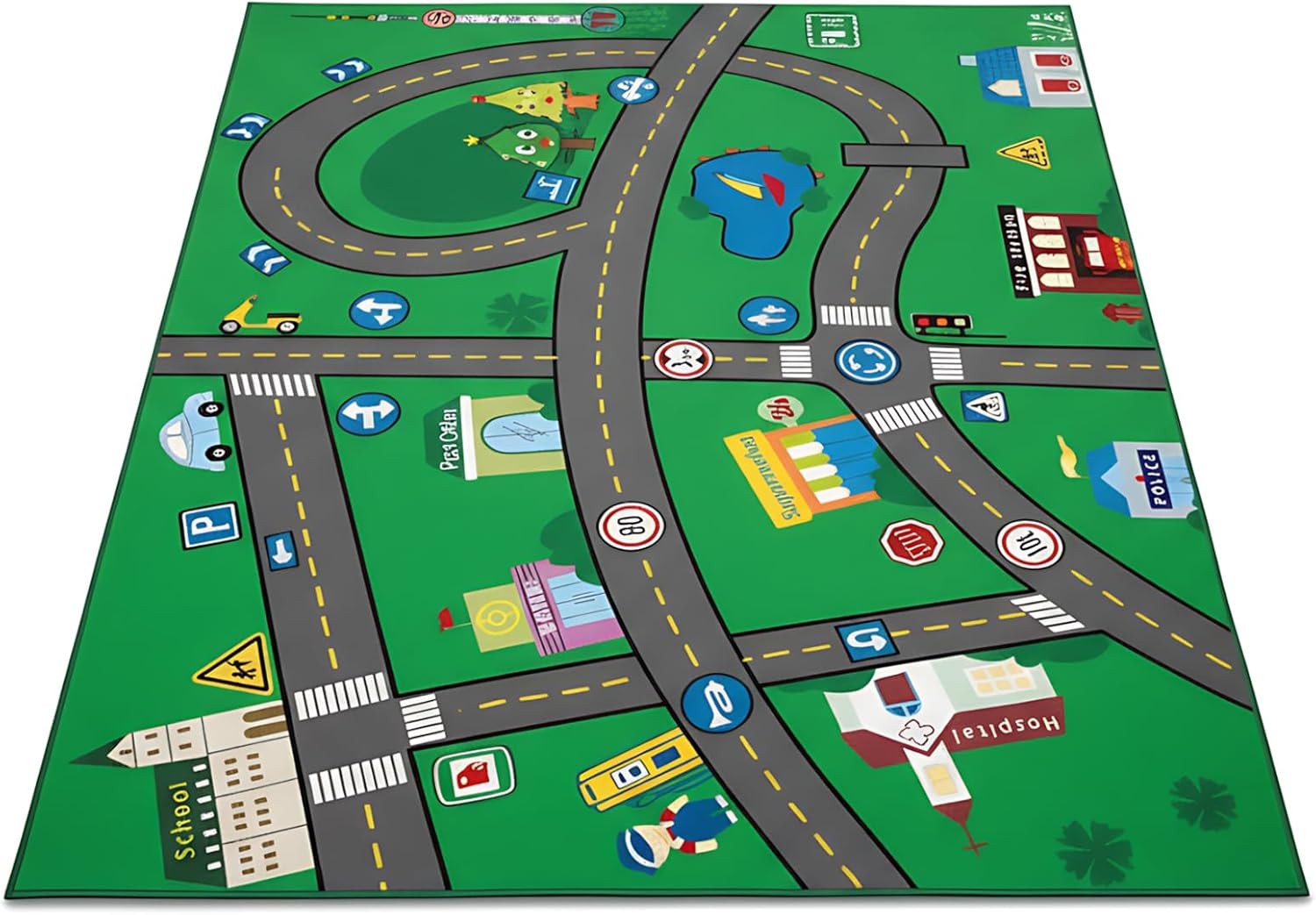 Kid Rug Playmat for Toy Cars, Play Area Carpet with Rubber Backing, for Children Bedroom Play Room 80cm120cm(2'7"3'11")