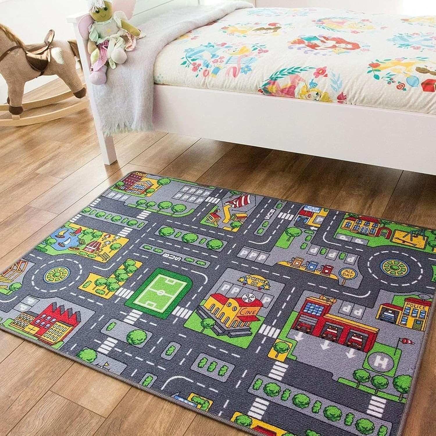 TYKTZXY Kid Rug Playmat for Toy Cars, Play Area Carpet with Rubber Backing, for Children Bedroom Play Room 80cm×120cm(2'7"×3'11")