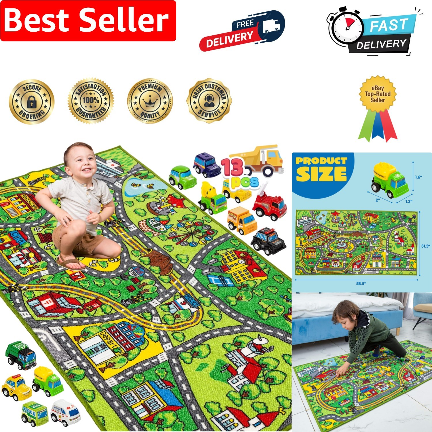 City Playmat Rug Toy for Kids Age 3 4 5 6 7 8+ with 12 Pull-Back Cars,Jumbo R...