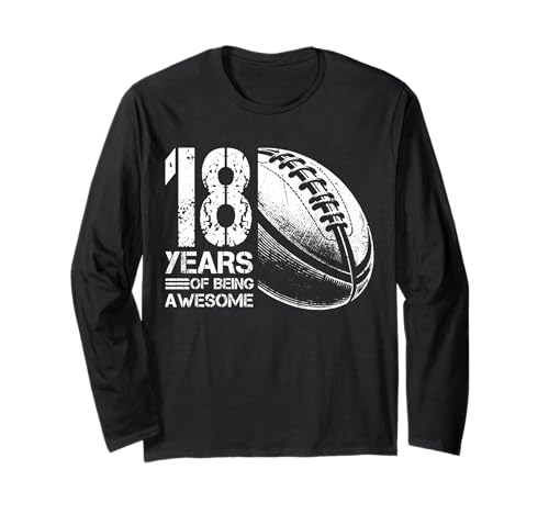 18th Birthday Retro Rugby Player 18 Years Old Boy Girl Long Sleeve T-Shirt