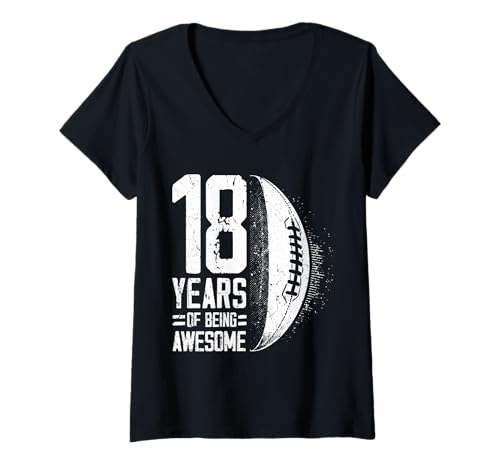 Women's 18th Birthday Retro Rugby Player 18 Years Old Boy Girl V-Neck T-Shirt