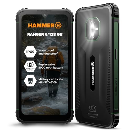 HAMMER Ranger 16GB/256GB Rugged Smartphone, 5000mAh Battery, 50MP Camera, 6" Display, Android 15, Gorilla Glass 5, IP69 Waterproof, Dual SIM, eSIM, NFC