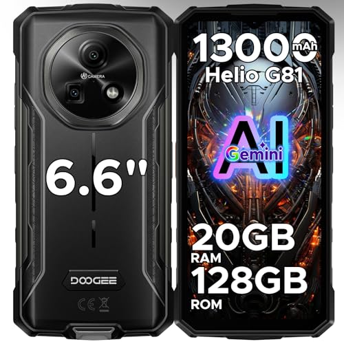 DOOGEE Fire 5 Pro Android 15 Rugged Smartphone & Gemini AI - 20GB + 128GB, 13000mAh & MTK Helio G81 Octa Core Rugged Phone,90Hz 6.6" HD+,13MP + 8MP,3 Card Slots Android Phone,Finger + Face ID/NFC/GPS