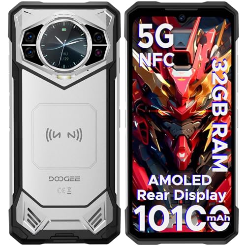 DOOGEE S200 Rugged Smartphone 5G, 6.72”FHD+/120Hz Android Rugged Phone with 1.32" AMOLED Rear Display, 10100mAh/33W, 32GB+256GB/2TB, 100MP+20MP+20MP Night Vision Camera, WiFi 6/NFC/Fingerprint, Silver