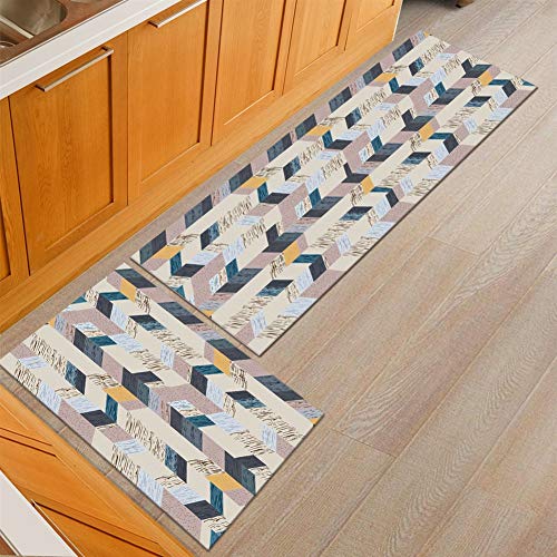 Ommda Modern Geometric Pattern Non Slip Washable Kitchen Mats and Rugs 2 Piece Runners Carpet Doormats for Living Room,50x80cm+50x160cm,