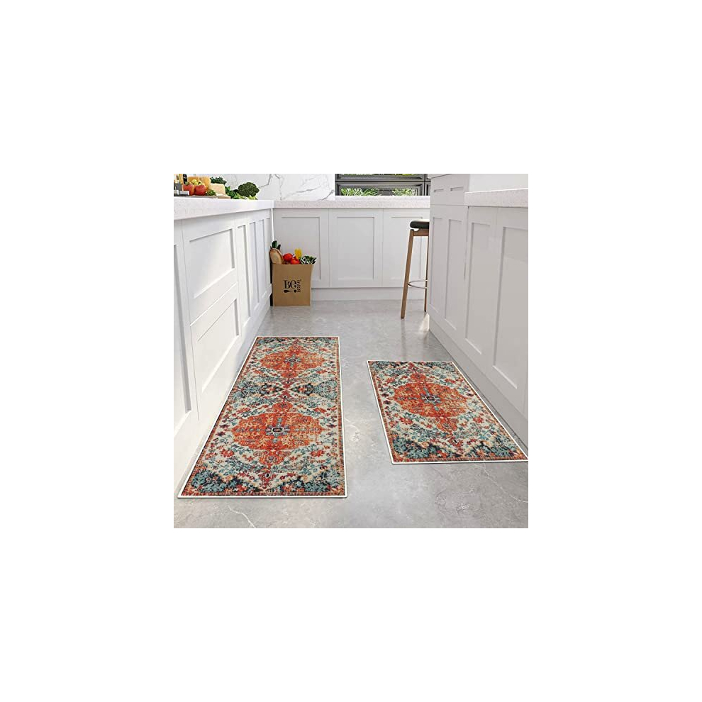 Oriental Kitchen Rugs and Mats Non Slip Washable Kitchen Rug Runners Absorbent Boho Low Pile Floor Mat for Kitchen Bedroom Entrance Laundry