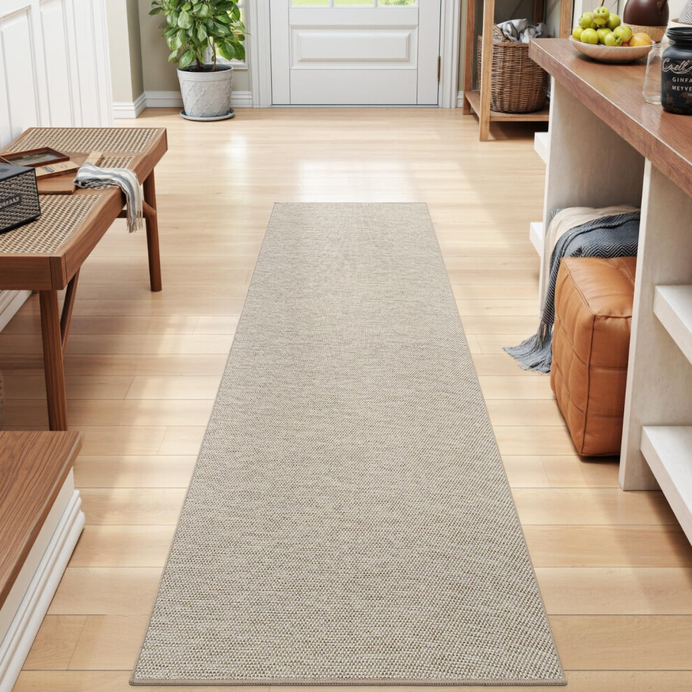 DEXI Runner Rug 43 x 200 cm, Extra Long Non-Slip Dirt Trapper Mat, Rubber Backed Kitchen Rugs, Thin and Washable Floor Carpet Runners for Hallway Entryway Laundry Besides, Beige