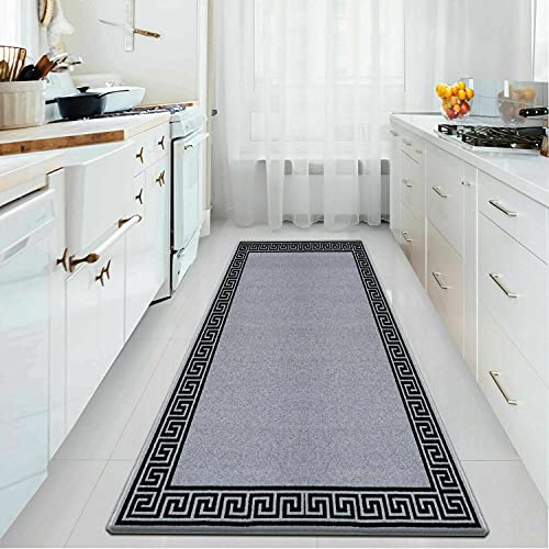 DEXI Runner Rug 61 x 183 cm, Extra Long Non-Slip Dirt Trapper Mat, Rubber Backed Kitchen Rugs, Thin and Washable Floor Carpet Runners for Hallway Entryway Laundry Besides, Grey